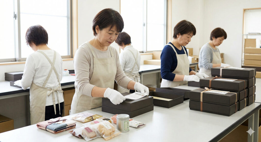 冠婚葬祭で使用されるギフト商品を詰める化粧箱の組み立てやラベル貼りなどを行います。