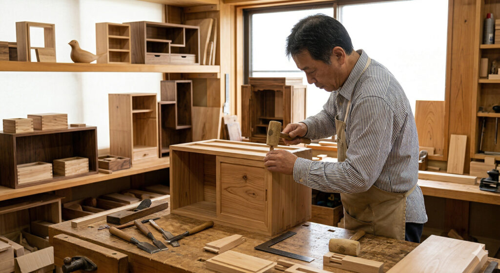 手作りで精巧な収納棚など、各種木工製品を制作しています。